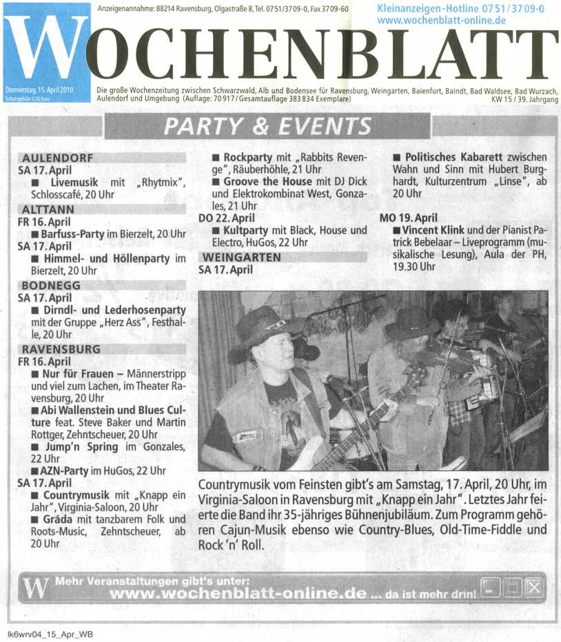 | 17.05.2010 | Wochenblatt Ravensburg | Vorabinfo/Bild | Virginia Saloon | jpg (113KB) |