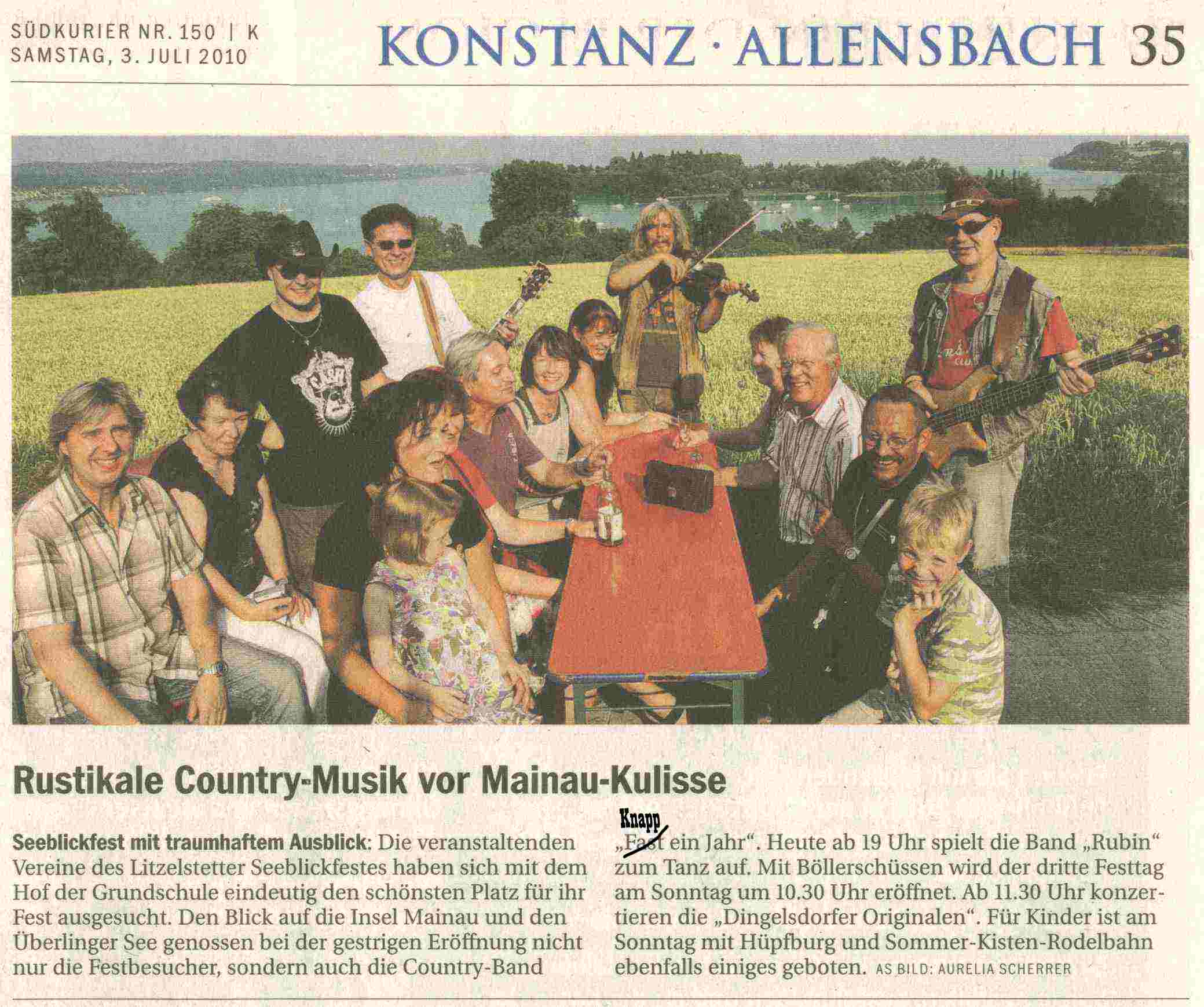 | 03.07.2010 | Südkurier Konstanz | Kurzbericht/Bild | Litzelstetten Seeblickfest | jpg (181KB) |
